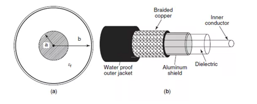 The Coaxial Cable is a kind of broadband microwave Transmission Cable composed of two Coaxial Cylindrical Conductors with Radius a and b, filled with air or high frequency medium between the inner and outer conductors