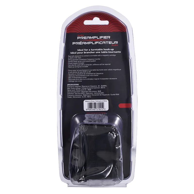 The Phono Preamp for Turntable can be used to convert most AUX inputs normally found on audio amplifiers and mini sound systems. It is a necessary component for the transfer of vinyl records to CDs using a computer's CD burner (specific software may be required for this application).